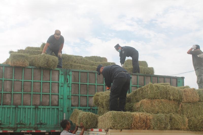 今年以來(lái),內(nèi)蒙古自治區(qū)西部的阿拉善盟持續(xù)高溫少雨,阿拉善左旗蘇宏圖地區(qū)草場(chǎng)退化嚴(yán)重,駝、羊等牲畜草料嚴(yán)重匱乏,影響了牧民正常生產(chǎn)生活。8月9日,從甘肅省購(gòu)置的草料順利抵達(dá)蘇宏圖,但是由于缺少精壯勞動(dòng)力,牧民們望著一車(chē)車(chē)救命的草料卻犯起了難。正當(dāng)大家一籌莫展之際,派出所聞?dòng)嵔M織6名民警組成黨員先鋒隊(duì)投入勞動(dòng),經(jīng)過(guò)3天的努力,成功將70噸1200捆草料分裝到牧民車(chē)上,受到群眾的一致好評(píng)。(牛鑫 肖鵬 梁鎮(zhèn))