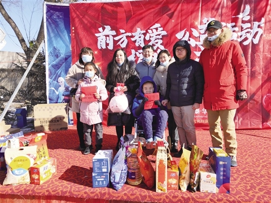 志愿者代表為兩名孩子送來愛心壓歲錢和年貨