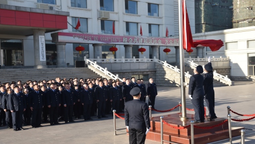 國家稅務(wù)總局土默特右旗稅務(wù)局升旗儀式現(xiàn)場(chǎng)