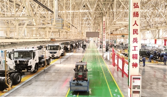“爆單了!”負(fù)責(zé)電池裝配的一線技術(shù)工人劉強(qiáng)內(nèi)心為之振奮。看著眼前這條700米長的底盤生產(chǎn)線上,每8分鐘就有一臺(tái)新能源重卡下線,他和工友們信心滿滿,干勁十足。