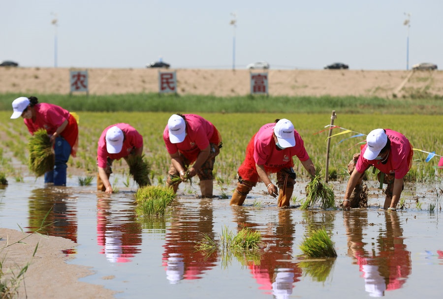 6月18日,2022年包頭市首屆插秧節(jié)暨“網(wǎng)約游東河·玩轉(zhuǎn)新農(nóng)村”主題活動在此間舉行。當(dāng)天,來自東河區(qū)的20支插秧隊伍,走進(jìn)烈日炎炎的水田,挽起褲管,穿上水靴,進(jìn)行了一場別開生面的插秧大賽。