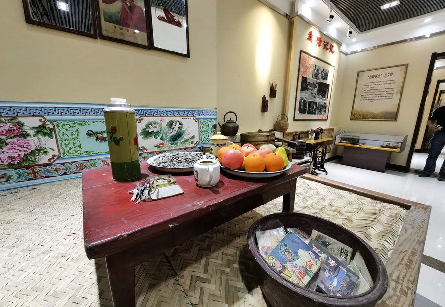 王大漢村村史博物館內(nèi),講解員正在講解黃河“水旱碼頭” 記者 張楊攝影