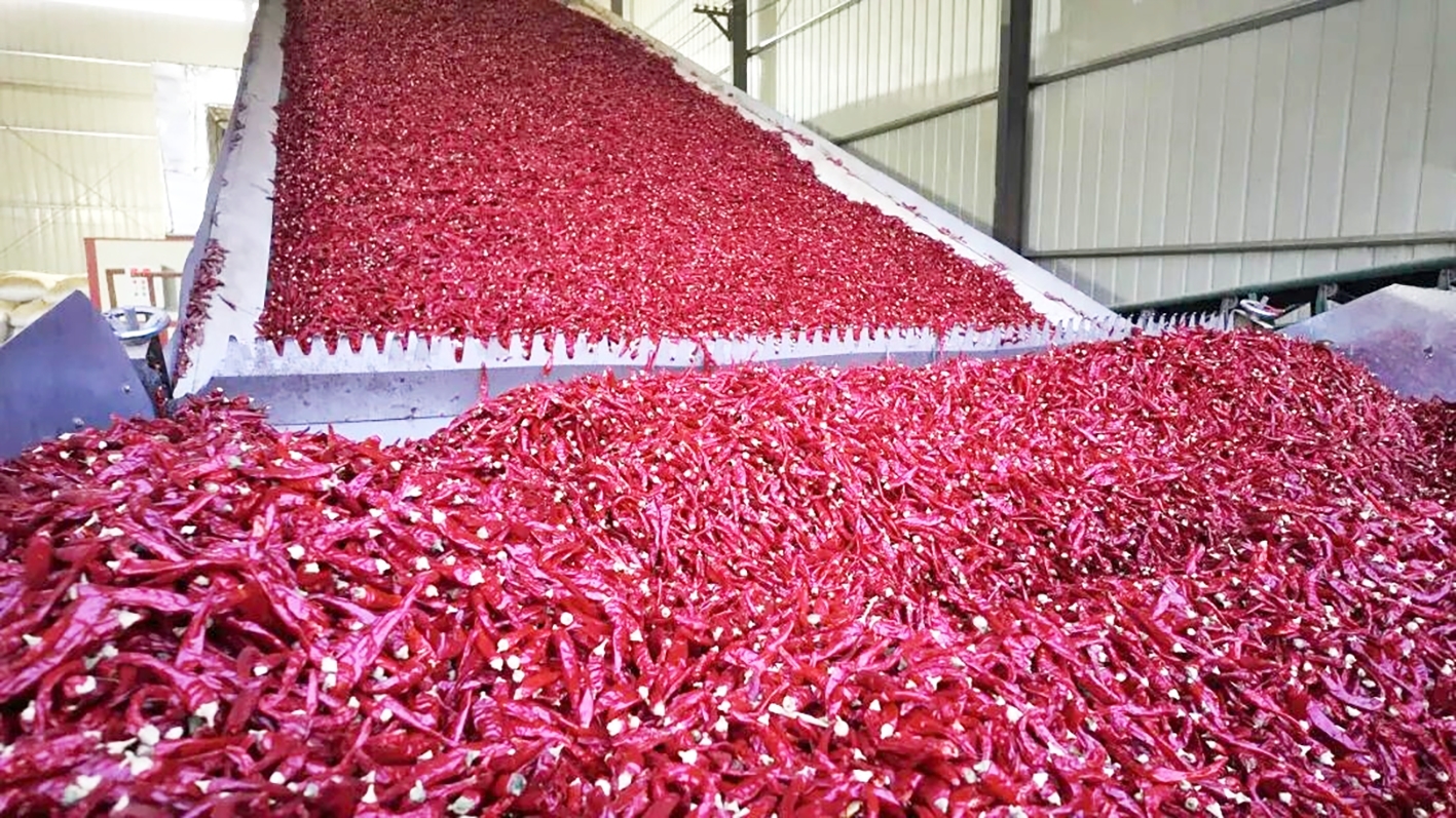 目前,臨河區(qū)共建成28條辣椒初加工生產(chǎn)線,涵蓋清雜、剪把、色選、烘干等全流程工藝,年加工能力可滿足10萬畝朝天椒加工需求,有效解決了以往農(nóng)戶面臨的“晾曬難、儲存難、賣價低”等難題,并通過加工環(huán)節(jié)的增值效應(yīng),實現(xiàn)辣椒產(chǎn)品身價倍增。