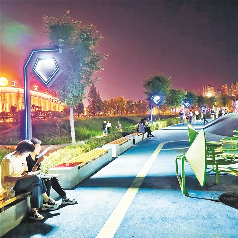 炎炎夏日,居民紛紛走出家門,來到公園鍛煉游玩、欣賞美景,體驗城市基礎(chǔ)設(shè)施帶給人們的便利舒適和幸??鞓?。圖為準格爾旗薛家灣湖東智慧公園里居民在園內(nèi)消暑。(張忠義)