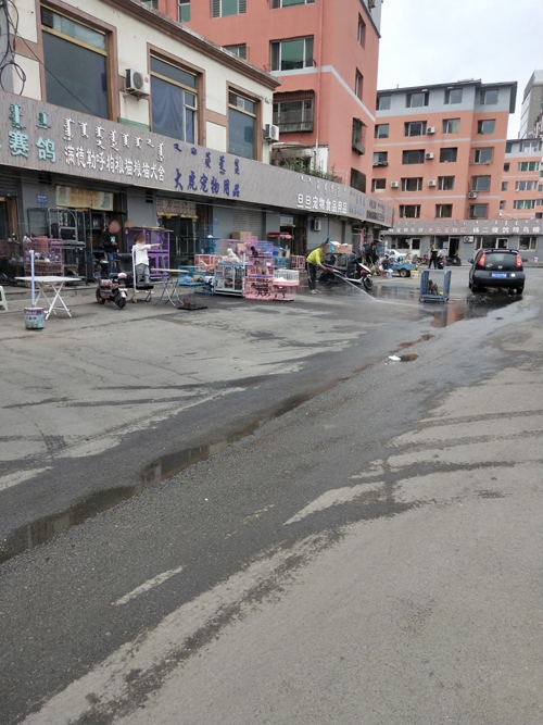 北疆新聞網(wǎng)消息(內(nèi)蒙古晨報(bào)實(shí)習(xí)記者 白雪)近日,有市民發(fā)現(xiàn)位于呼和浩特市回民區(qū)新華橋南街上的幾家賣狗賣鴿子的商家經(jīng)常在街上清洗狗籠、刮鴿子糞,并錄制了視頻發(fā)到網(wǎng)上。臟水和污垢在街上流淌,尤其動物身上的細(xì)菌讓每天接送孩子上學(xué)路過此處的居民不禁擔(dān)憂起來。