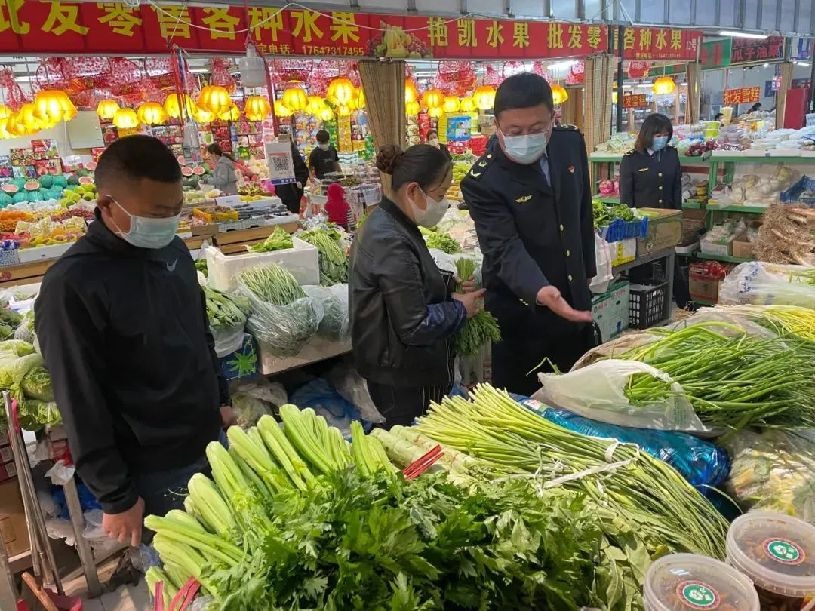 在澳嬴便民市場,新城區(qū)市場監(jiān)督管理局執(zhí)法隊員重點檢查各市場經(jīng)營業(yè)戶的證照、索證索票、三防設施、衛(wèi)生狀況、生熟食分開、食品安全檔案等內(nèi)容。要求市場主辦方要落實主體責任,嚴格準入,杜絕無照經(jīng)營,加強農(nóng)殘檢測更新,保持市場良好經(jīng)營秩序。