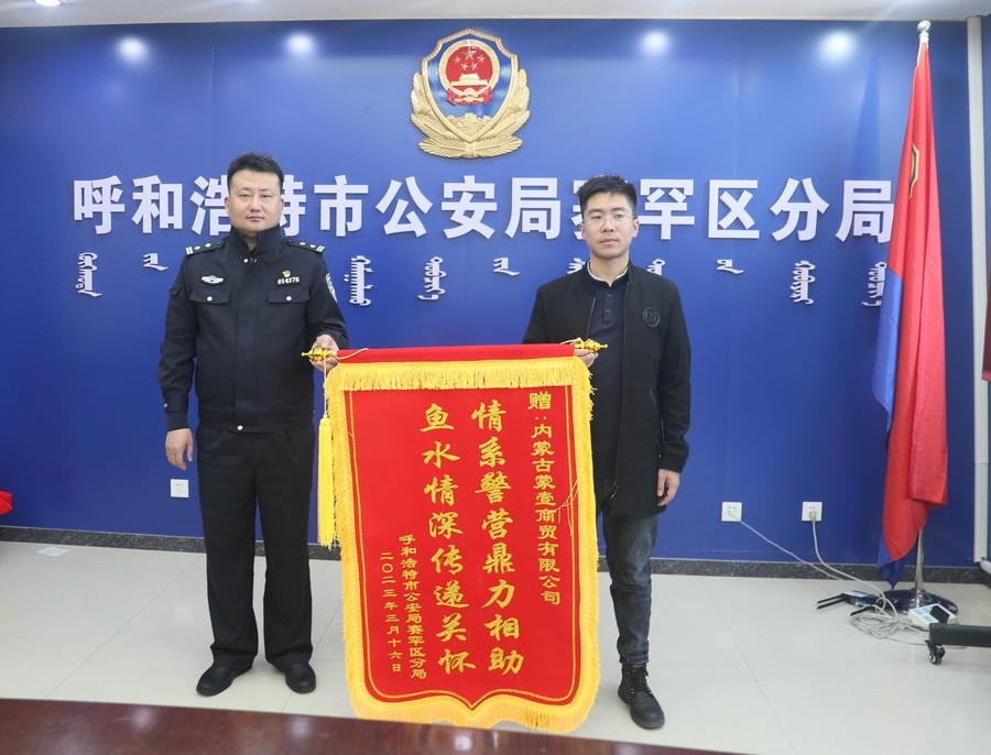賽罕區(qū)副區(qū)長、公安分局局長趙新龍,政委郭震乾等領(lǐng)導(dǎo)熱情接待了商會和愛心企業(yè)負責(zé)人,并向商會及愛心企業(yè)贈送錦旗以示感謝。