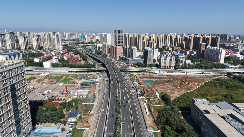 9月6日,呼和浩特昭烏達路與南二環(huán)互通立交工程正在施工。