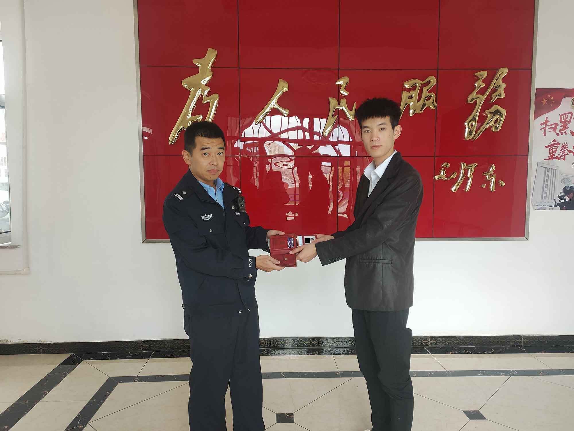 半月前,這個所民警在開展“百萬警進千萬家”訪民情工作時,在轄區(qū)某小區(qū)門口發(fā)現了一個紅色錢包,民警通過多種方式查找失主,均未找到錢包的失主,民警只好暫為失主保管錢包。9月20日當天,一名到派出所補辦身份證的年輕小伙,引起了民警的注意,男子劉某與錢包上的證件照無異,戶籍民警問詢劉某補辦情況,劉某說:“大概半月前他不小心把自己的錢包弄丟了,里面有一張身份證和幾張銀行卡”。民警核對完人員信息后,將錢包還給了劉某。看著失而復得的錢包,劉某激動地說:“因為里沒多少錢,也沒刻意勻找,本打算到派出所補辦個身份證,沒想到還把錢包找回來了,感謝民警為我保管錢包,謝謝你們!”