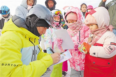 “十四冬”自由式滑雪公開組男子大跳臺(tái)冠軍楊昊回家鄉(xiāng)上滑雪公開課