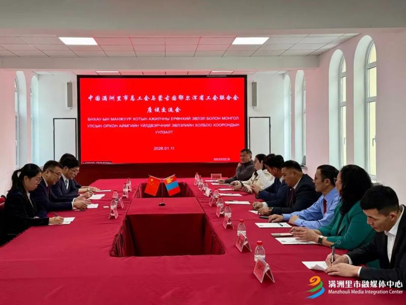 1月11日,滿洲里市總工會(huì)與蒙古國(guó)鄂爾渾省工會(huì)聯(lián)合會(huì)座談交流會(huì)舉行。雙方圍繞工會(huì)工作經(jīng)驗(yàn)互鑒、跨境職工服務(wù)合作等議題深入交流,共話友誼、共謀發(fā)展。