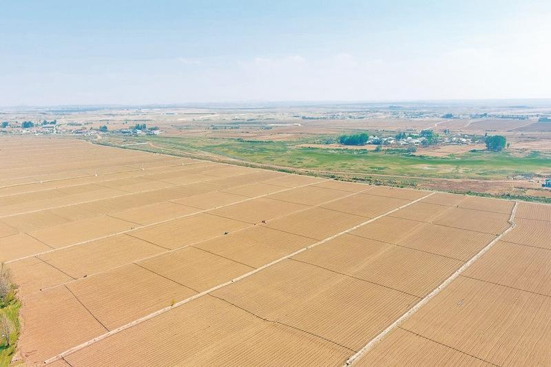 截至目前,海南區(qū)巴音陶亥鎮(zhèn)2.82萬(wàn)畝農(nóng)田已經(jīng)種植完成95%以上,第一次澆水基本完成。(魯吟 攝)