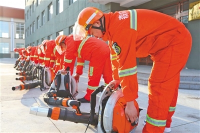 森林消防隊員正在進行防滅火應(yīng)急演練。