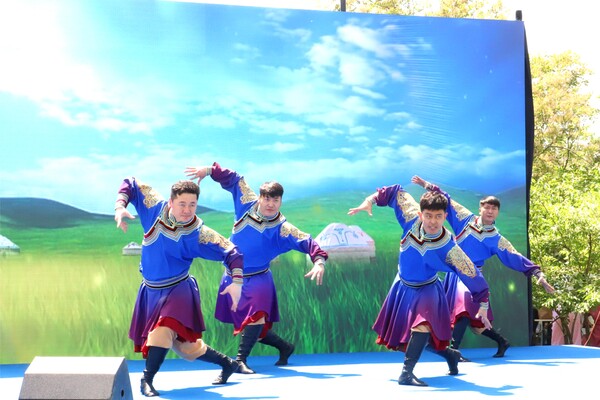 緊接著,興安盟烏蘭牧騎隊(duì)員手中的馬頭琴悠然奏響,旋律如潺潺溪流,流淌在每一個(gè)人的心田。身著盛裝的《草原歡歌》舞者在舞臺(tái)上盡情翻飛旋轉(zhuǎn),她們的舞姿輕盈靈動(dòng),仿佛將首都市民帶入了廣袤無垠的科爾沁草原,讓人們?cè)诰┏侵幸材芨惺艿讲菰倪|闊與奔放。