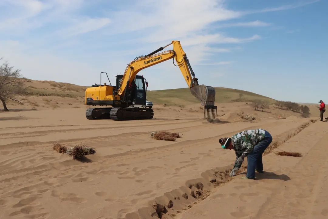 改裝后的挖掘機(jī)在治沙工作中展現(xiàn)出了強(qiáng)大的優(yōu)勢(shì)。據(jù)了解,以往人工種植時(shí),兩個(gè)人一天才能完成一畝地的工作量,五個(gè)人最多也只能處理兩畝半到三畝地。而如今,改裝后的挖掘機(jī)一天的工作量相當(dāng)于五個(gè)人種植十畝地,不僅大大提升了工作效率,還節(jié)約了大量的人力和物力。原本只能用于挖掘作業(yè)的鉤機(jī),經(jīng)過簡(jiǎn)單改裝后,搖身一變成為防塵固沙的“利器”,為沙漠治理工作注入了新的活力。目前,合作社已投入兩臺(tái)改裝挖掘機(jī)進(jìn)行作業(yè),并計(jì)劃在未來將其數(shù)量增加至五臺(tái),以確保按時(shí)完成2025年規(guī)劃中8.4萬畝的治理任務(wù)?! ?/p>