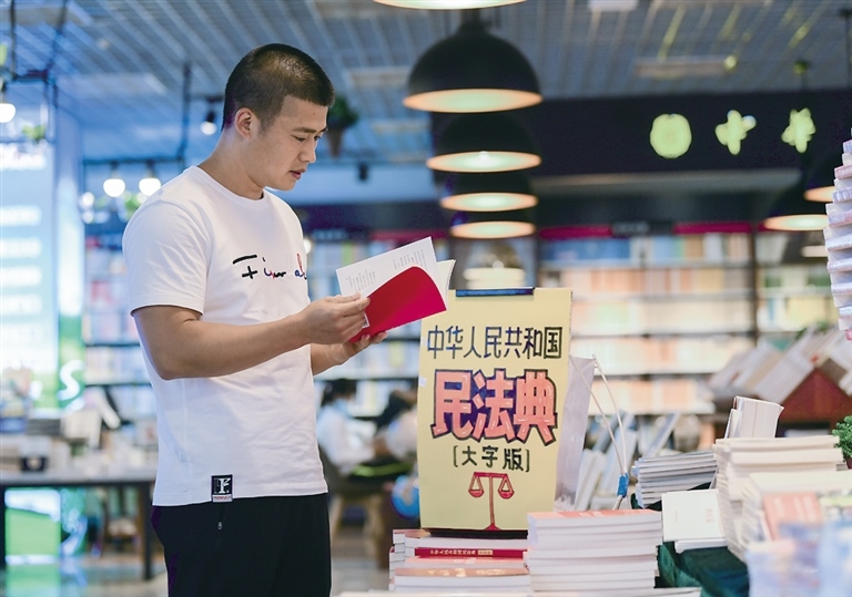 6月10日,呼和浩特市民在內蒙古新華書店購買《中華人民共和國民法典》。據(jù)工作人員介紹,《中華人民共和國民法典》自6月2日擺上貨架就十分吸引讀者目光,成為熱銷圖書,截至目前該書店訂購量已逾2000冊。攝影/北方新報正北方網記者 牛天甲