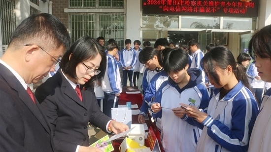 福建莆田人民檢察院第六檢察部開(kāi)展反詐宣傳。