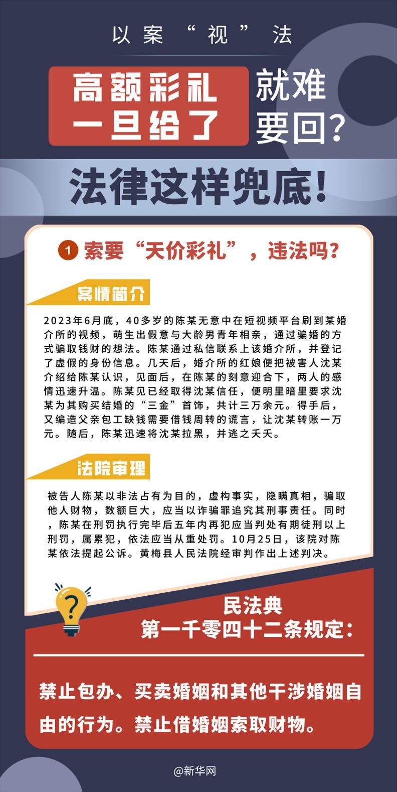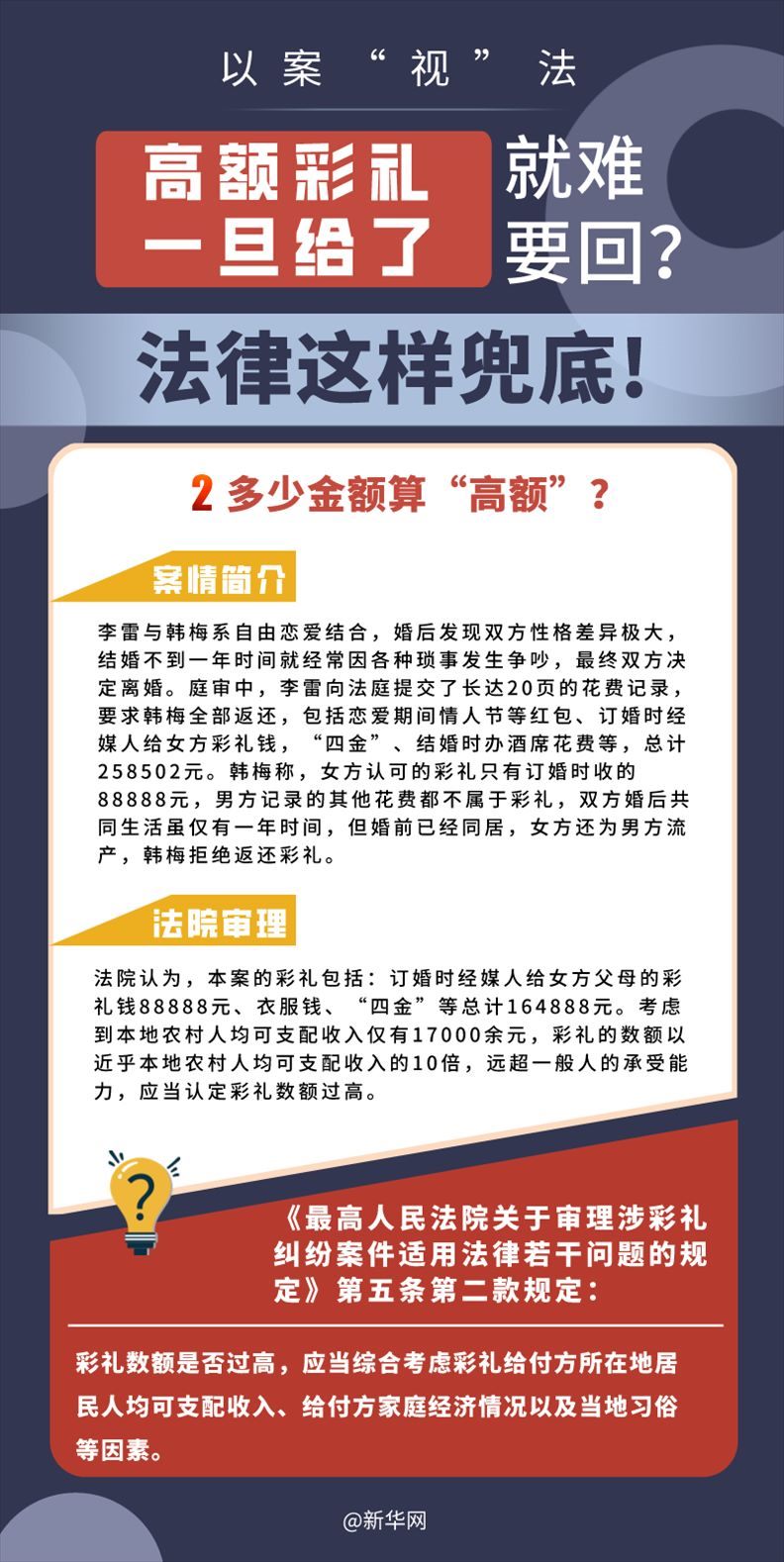 “五一”長假期間,各地迎來了婚禮高峰期,“彩禮”話題,尤其農(nóng)村高額彩禮現(xiàn)象備受關(guān)注。破解高價彩禮,在解決爭議的層面,司法盡了最大努力兜底。本期《以案“視”法》針對涉“高額彩禮”糾紛,帶大家學習相關(guān)法律知識。