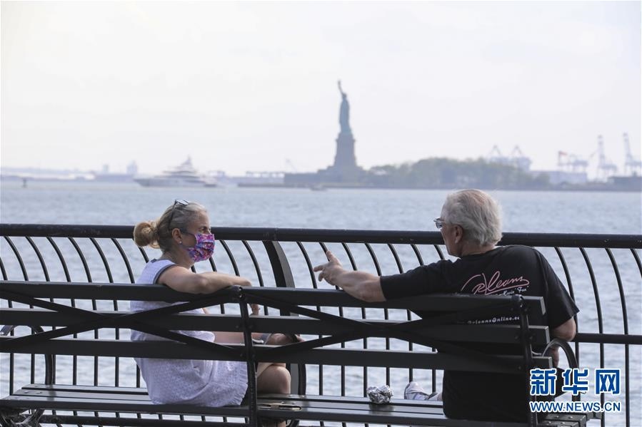 6月10日,人們?cè)诿绹~約一處公園內(nèi)聊天。新華社記者王迎攝