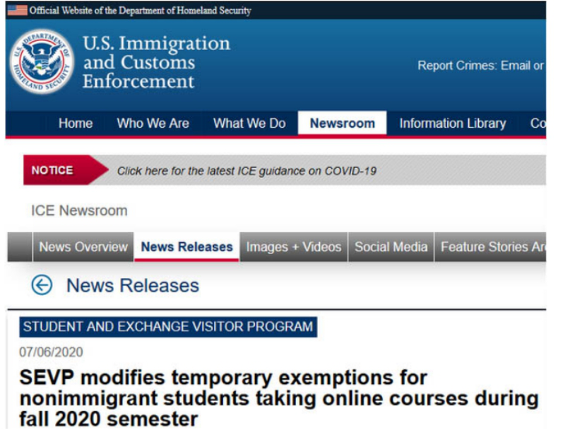 當(dāng)?shù)貢r間7月6日,針對美國高校今年秋天將開始的課程,美國移民與海關(guān)執(zhí)法局(ICE)發(fā)布了一項新規(guī)定,大致是這么幾個意思: