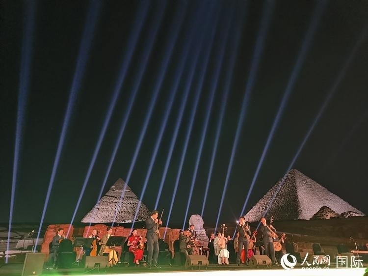 中埃兩國同為世界文明古國,人文領域合作空間大、潛力足。夜幕下的吉薩三大金字塔在燈光映襯下巍峨聳立,現(xiàn)場橫幅展示出“讓中埃友誼如尼羅河水奔涌向前”字樣,兩大古老文明此刻在金字塔上空相遇。音樂會的成功舉辦將成為中埃兩國文化合作新起點。
