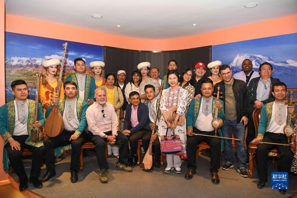 新疆自古以來(lái)是多元文化并存的地區(qū)。在疏附縣新疆民族樂(lè)器村,當(dāng)?shù)貥?lè)者用熱瓦甫、都塔爾等傳統(tǒng)樂(lè)器為參訪團(tuán)一行演奏歌曲。巴西駐廣州總領(lǐng)事杜飛對(duì)此印象深刻:“我曾在中亞地區(qū)工作多年,對(duì)這些樂(lè)器很熟悉,新疆多元文化融合現(xiàn)狀展示出各民族可以很好地生活在一起?!?/p>