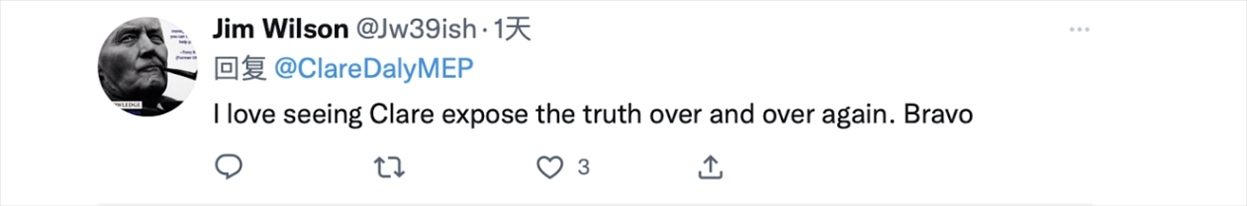 這條推特內容引發(fā)不少網(wǎng)友討論。許多推特網(wǎng)友在推文下方評論支持戴利的言論,“我喜歡看到克萊爾·戴利一遍又一遍地揭露真相,太棒了?!薄?/p>