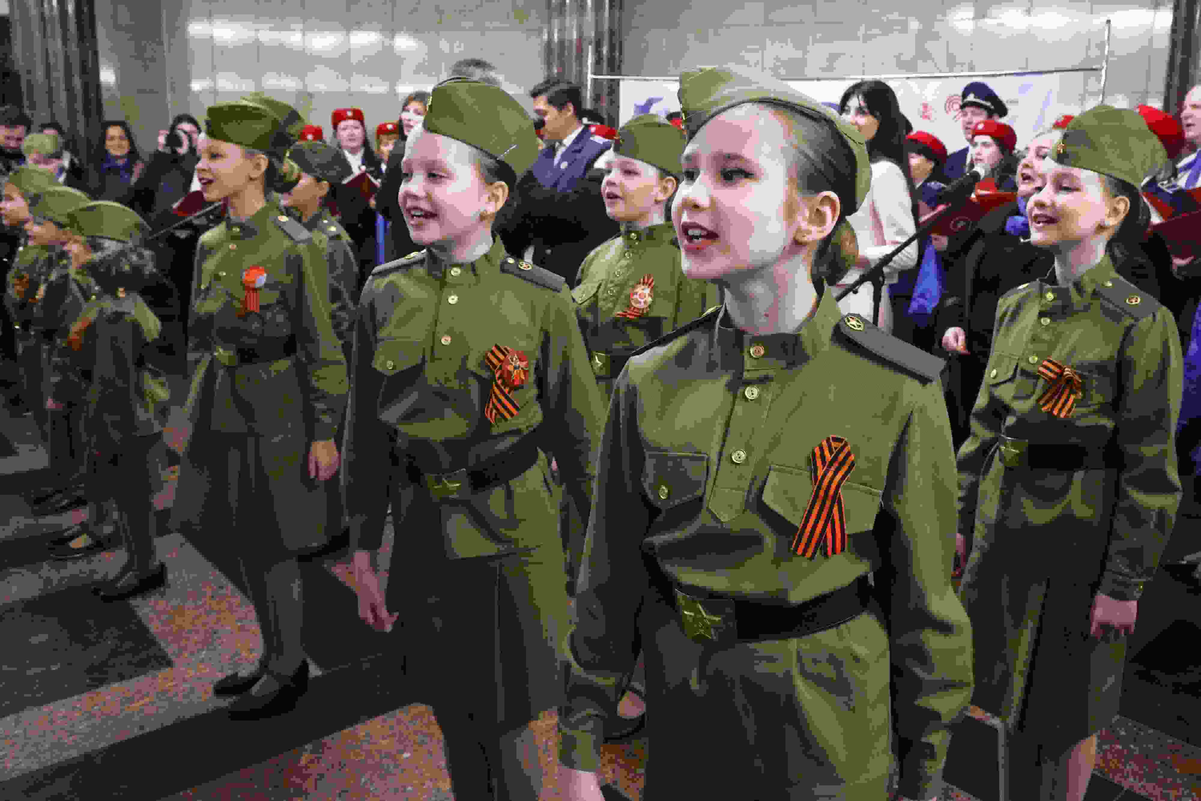 當?shù)貢r間2023年5月8日,俄羅斯莫斯科,兒童在紀念二戰(zhàn)勝利78周年的音樂會上表演。 視覺中國