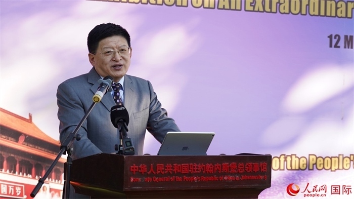 5月12日,中國駐約翰內斯堡總領館在館內舉辦新時代中國非凡十年成就圖片展,慶祝中南建交25周年。人民網(wǎng) 劉暢攝
