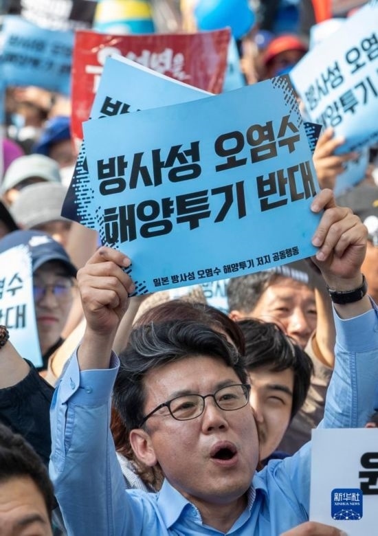 當日下午,韓國“韓日歷史正義和平行動”、《6·15共同宣言》韓方實踐委員會等市民團體和從各地趕來的民眾聚集在首爾市世宗大路,舉行“阻止日本放射性污染水排海全國行動”大會,敦促日本政府采取負責任的行動、停止推進核污染水排海計劃。