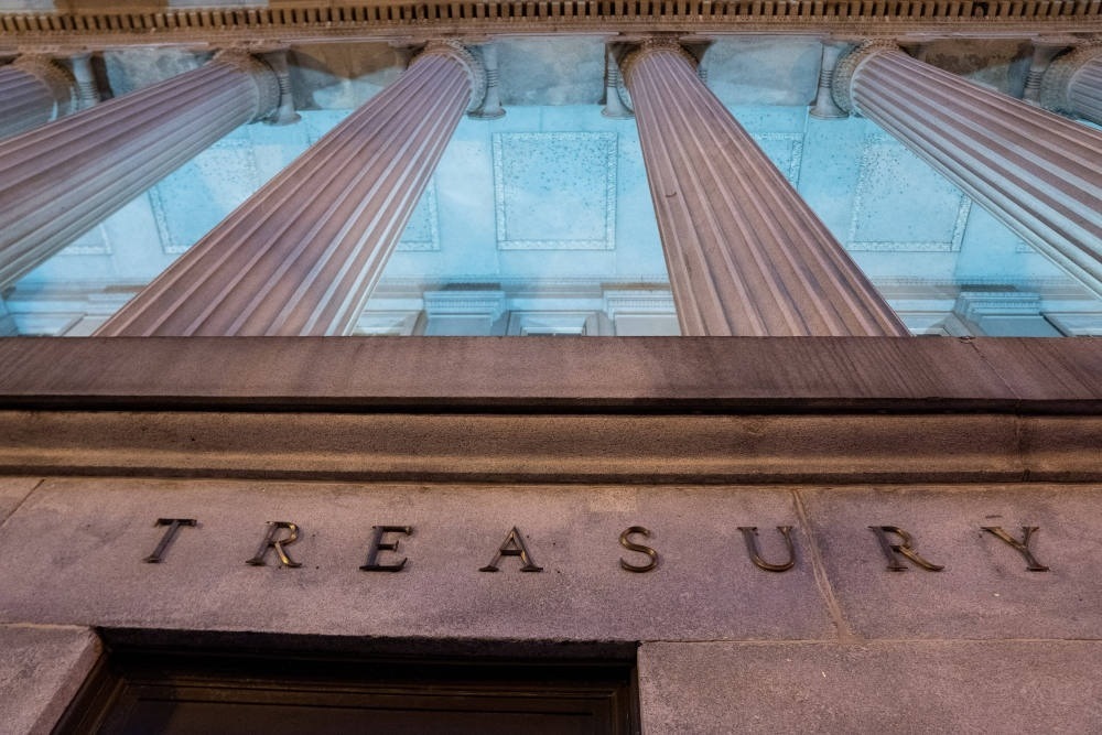這是1月20日在美國首都華盛頓拍攝的財政部大樓。(新華社記者劉杰攝)