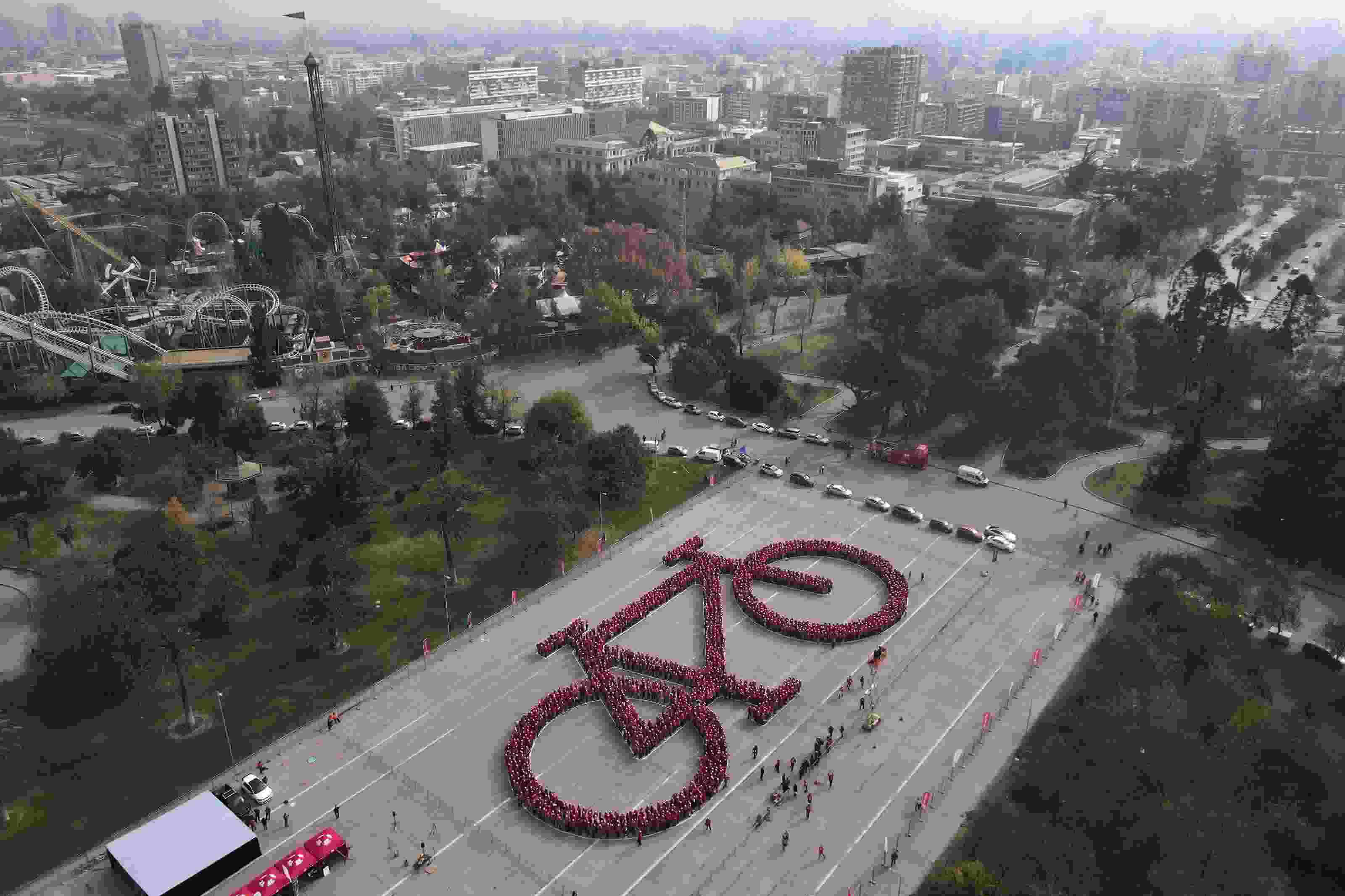 智利:民眾組成“最大”自行車圖像