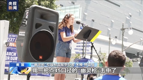 “幽靈槍”校園槍擊案幸存者 米婭·特雷塔:當(dāng)時我們正在談笑,突然聽見“砰”的一聲槍響,當(dāng)?shù)诙晿屄曧懫饡r我已經(jīng)跌倒在地上。我爬起來,跑進(jìn)教室里,同學(xué)和老師急忙為我止血,我被一名不認(rèn)識的同校學(xué)生,同時也是一個未成年人,用一把點45口徑的“幽靈槍”擊中了。