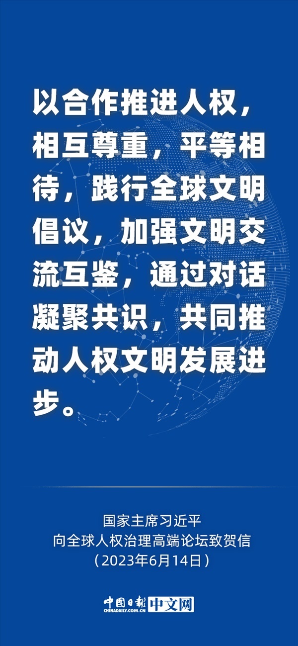 6月14日,國家主席習(xí)近平向全球人權(quán)治理高端論壇致賀信。習(xí)近平指出,當(dāng)前,人類又一次站在歷史的十字路口,全球人權(quán)治理面臨嚴(yán)峻挑戰(zhàn)。我們主張: