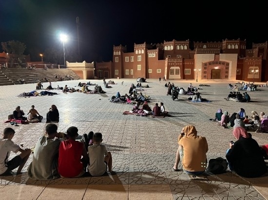 9月9日凌晨,在距離震中200多公里的摩洛哥瓦爾扎扎特市,居民在市區(qū)的空地避險(手機照片)。新華社記者王東震攝