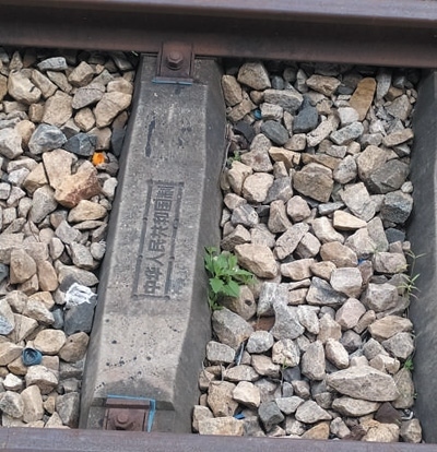 鐵軌枕木上印有“中華人民共和國(guó)制”字樣。圖為本報(bào)記者黃培昭攝