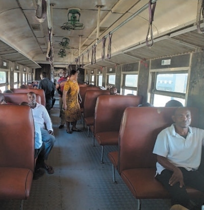 乘客乘坐坦贊鐵路列車。圖為本報(bào)記者黃培昭攝