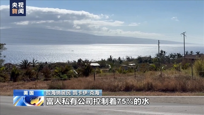 央視記者 劉旭:整個(gè)毛伊島都是異常干燥炎熱的天氣,所以在我旁邊也是連片枯草的景象。整個(gè)毛伊島西部地區(qū),包括拉海納地區(qū),淡水資源非常緊缺。當(dāng)?shù)匾恍┚用竦纳钣盟窃趺磥淼哪兀渴窃谶h(yuǎn)處山上地勢(shì)較高的地區(qū),有一些儲(chǔ)水設(shè)施或者蓄水池,把一些天然的降水和高山融水儲(chǔ)存起來,另外再通過地表徑流流經(jīng)到生活的不同區(qū)域,很多當(dāng)?shù)孛癖姇?huì)安裝這樣的水閥、水表把水引到自己的家中。在8月8日拉海納大火發(fā)生之后,當(dāng)?shù)氐乃Y源使用權(quán)利也出現(xiàn)很多爭(zhēng)議。