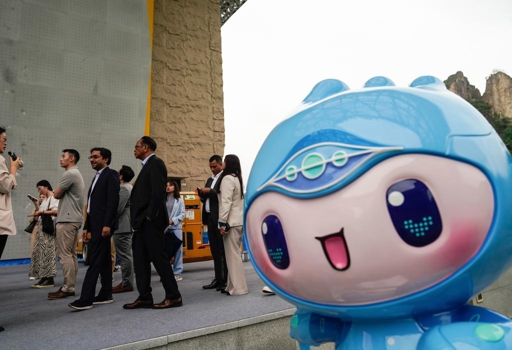 在自動檢測產(chǎn)品外觀缺陷的視覺質(zhì)檢機(jī)器人前,使節(jié)們停下腳步,饒有興致地觀看?;瘕堈f:“在數(shù)字經(jīng)濟(jì)推動下,人工智能等技術(shù)與傳統(tǒng)工業(yè)深度結(jié)合,讓人耳目一新。”