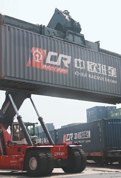 中鐵集裝箱運輸有限責任公司鄭州中心站外勤主任龔赟丹見證了中歐班列國際物流網(wǎng)壯大的進程?!爸袣W班列剛在鄭州開通時,每天裝運集裝箱的卡車才10多輛,現(xiàn)在每天都有四五百輛,業(yè)務范圍覆蓋40多個國家140多個城市?!饼徻S丹說。