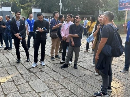 10月24日,2023“一帶一路”媒體合作論壇聯(lián)合采訪團(tuán)的外國(guó)記者參訪岳麓書(shū)院。(本報(bào)記者 劉書(shū)文攝)