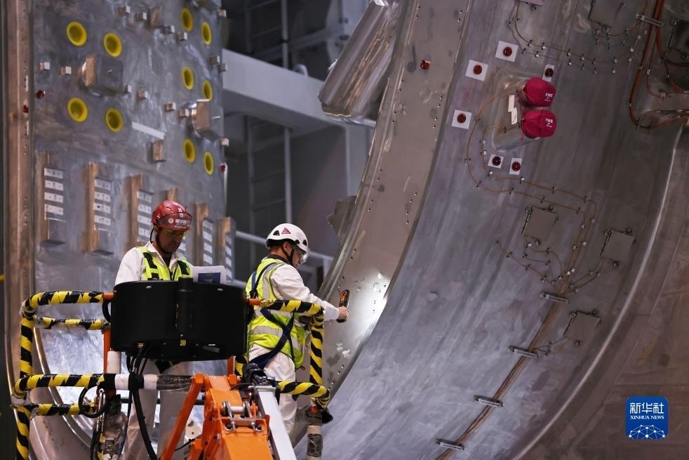 ?11月23日,工作人員在位于法國圣保羅-萊迪朗斯的國際熱核聚變實驗反應堆(ITER)的預組裝大廳里忙碌。新華社記者 高靜 攝