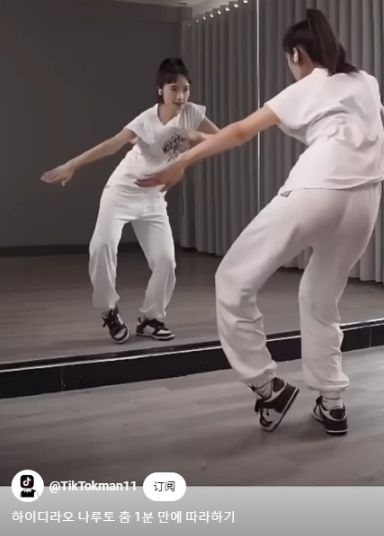 圖為韓國(guó)博主錄制教學(xué)視頻,手把手教跳“科目三”。圖片來(lái)源:社交媒體截圖
