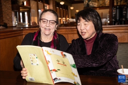 1月9日,在美國得克薩斯州達拉斯,朱麗葉·托馬斯跟著她的老師李鍵學(xué)習(xí)中文。新華社發(fā)(田丹攝)