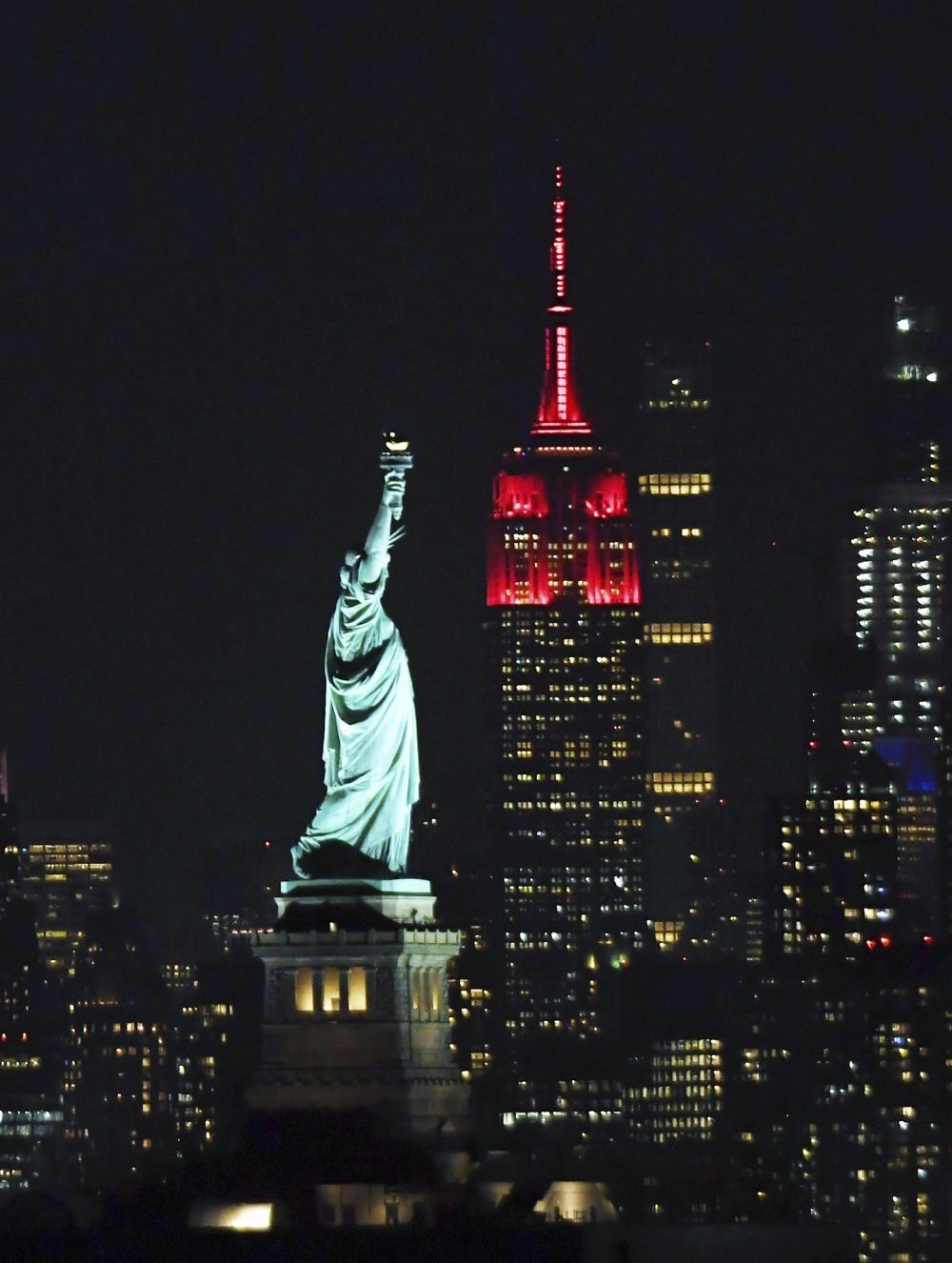 2月8日晚,美國(guó)紐約帝國(guó)大廈亮起中國(guó)春節(jié)主題燈光。新華社記者 李睿 攝