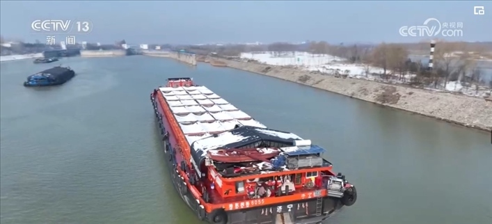 除了散裝船外,現(xiàn)在集裝箱船也逐漸多了起來。船民史優(yōu)現(xiàn)在駕駛的就是一艘集裝箱船,在此之前他駕駛的是一艘散裝船。變化源于2023年京杭運河棗莊段對航道進(jìn)行升級改造后航道變寬、變深,原來常年無法通行的2000噸級船舶也可以自由通行了。