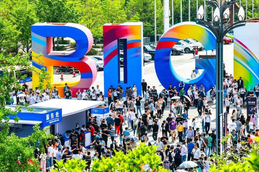 ?2023年5月26日,參會(huì)者從中國(guó)國(guó)際大數(shù)據(jù)產(chǎn)業(yè)博覽會(huì)展館外的大數(shù)據(jù)標(biāo)識(shí)前經(jīng)過。新華社記者歐東衢攝