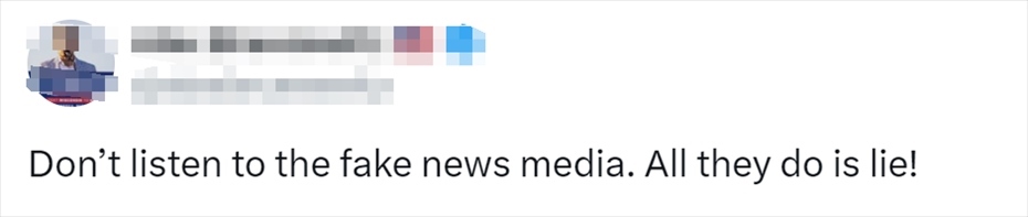 針對(duì)報(bào)道了特朗普這一言論的美國媒體,有網(wǎng)民留言:“不要聽那些虛假新聞媒體說的,他們說的都是謊言?!?/p>