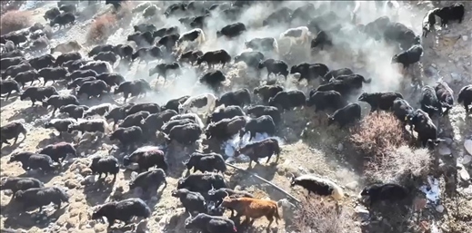 近日,新疆阿克陶縣布倫口鄉(xiāng)蓋孜村的牧民護(hù)送牦牛由海拔3700米轉(zhuǎn)場(chǎng)至海拔4100米的草場(chǎng)。3000余頭牦牛翻山越嶺,場(chǎng)面壯觀。目前,牦牛已安全抵達(dá)目的地。