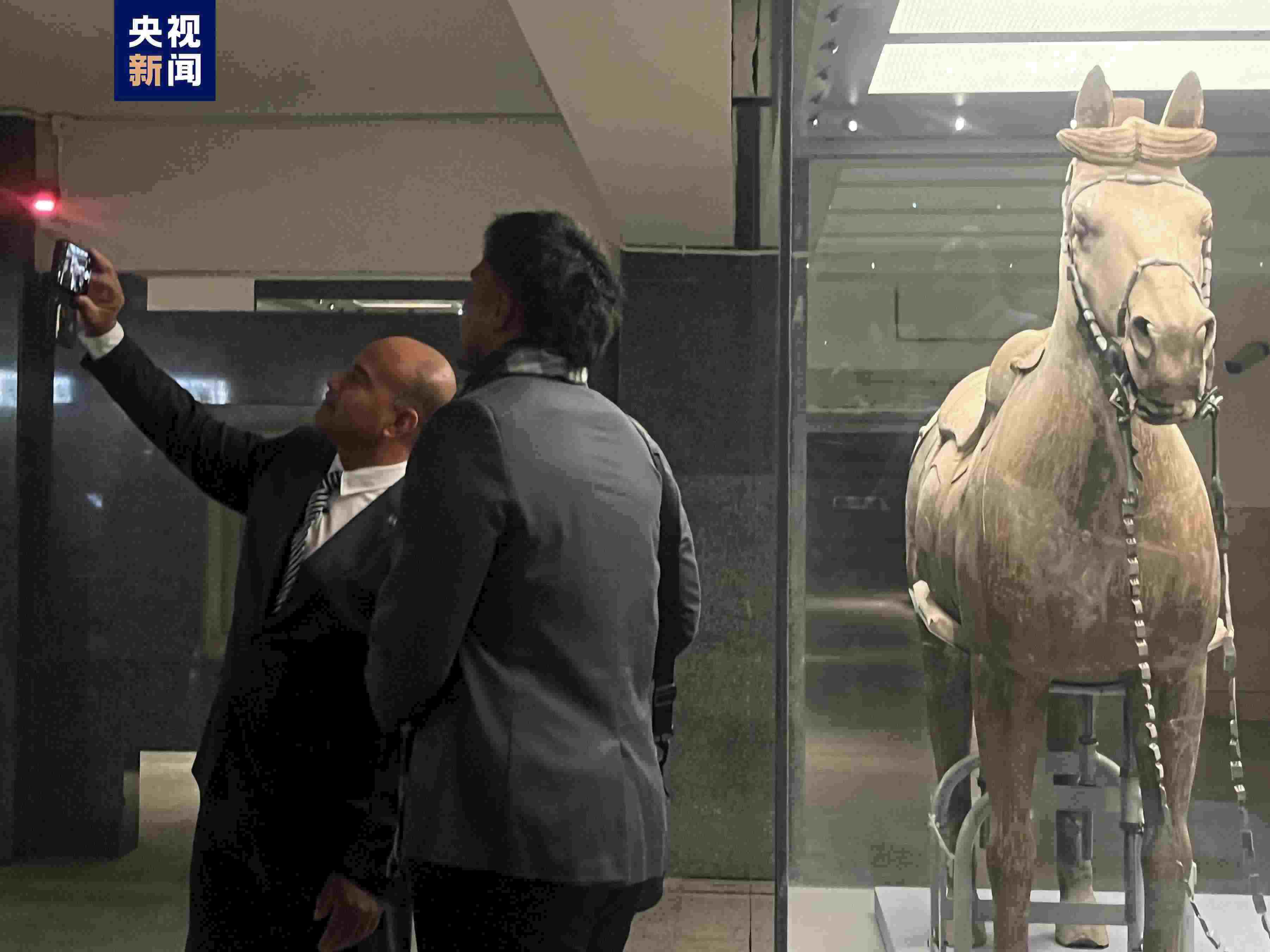 瑙魯總統(tǒng)阿迪昂今天(27日)在陜西西安繼續(xù)訪華之旅。在秦始皇兵馬俑博物館,阿迪昂總統(tǒng)先后參觀了一號(hào)坑、三號(hào)坑和二號(hào)坑,了解秦兵馬俑的歷史。參訪過程中,阿迪昂總統(tǒng)不時(shí)拿出手機(jī)自拍,記錄這段與古老中國“相遇”的難忘之旅。在接受總臺(tái)央視記者采訪時(shí),阿迪昂總統(tǒng)表示,自己一直非常期待能夠來到這里,希望通過此訪增進(jìn)對(duì)中國的了解,也相信瑙中兩國加強(qiáng)合作,將助力瑙魯實(shí)現(xiàn)進(jìn)一步發(fā)展與繁榮。